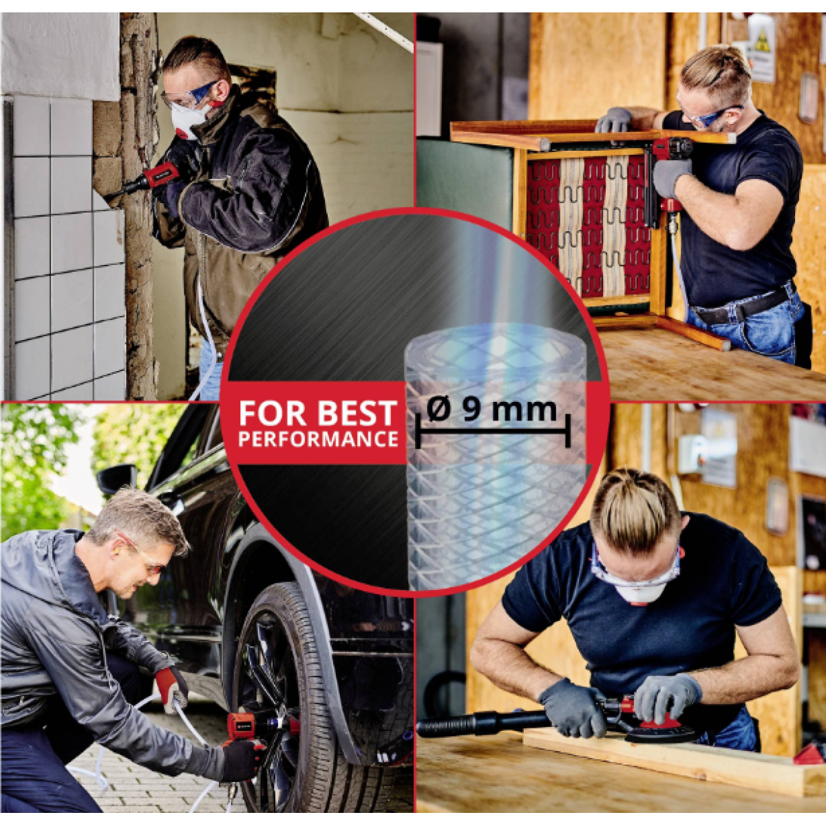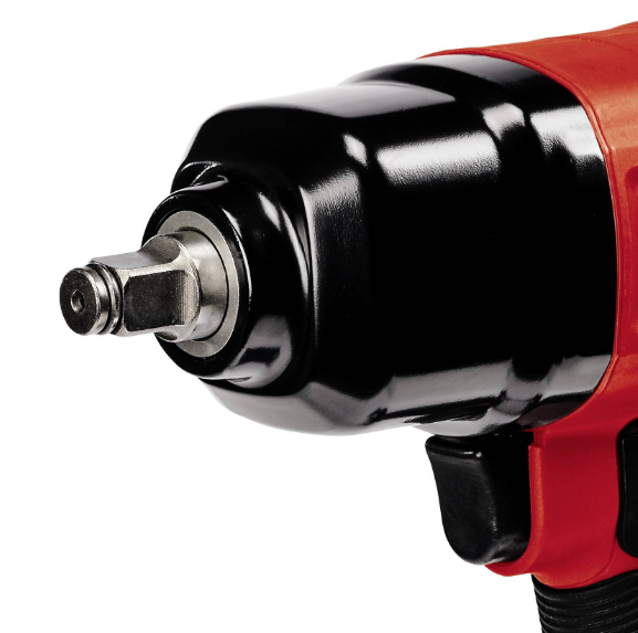 The Einhell compressed air impact driver TC-PW 610 takes on the work in the home, workshop and garage powerfully. Thanks to its high performance, it is also ideally suited for demanding tasks. The robust impact driver has a maximum torque of 610 Nm. The non-slip rubberized grip ensures safe and pleasant working in any situation. Equipped with left (single-stage) and right-handed rotation (three-stage), the compressed-air impact driver presents itself to a variety of DIY and do-it-yourself applications. It offers best performance from an inner diameter of 9 millimeters. The maximum working pressure is 6.3 bar, the maximum thread size is 19 millimeters. The equipment includes 10 sockets in the sizes 8/10/11/13/17/19/21/22/24/27 millimeters as well as 1x oil bottles and 1x plug nipple. An extension of 125 mm is also available. The compressed air impact driver TC-PW 610 from Einhell is immediately ready for use. Supplied in a practical transport and storage case.