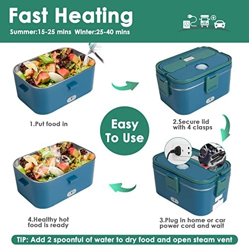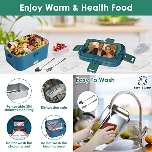 【Safe Material & Easy To Clean】Portable heated lunchbox made of premium PP plastic and 304 stainless steel,which is safe and durable.The portable heated lunch box comes with a insulation bag,you can carry the lunchbox easily.If the food was taken out of the fridge,the heating time should be extended appropriately. Warm Tips: Please do not clean the heating base with water,and do not add water to the heating base.
