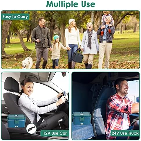 【3-in-1 Car,Truck& Home Use】This electric heated lunch box supports 110V home/office +12V car and 24V truck use.You will love this heated lunch box.It contains two different plugs: one for Work/Home(110V),one for Car/Truck (12V/24V).People who on the road for lunch or without access to a microwave,such as truck/Uber driver/office worker will be able to enjoy hot homemade food in the car/office.