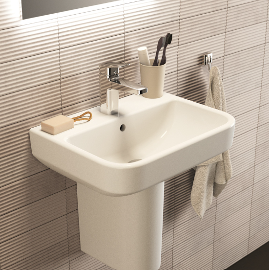 Need to make the most of limited space in a smaller bathroom? This compact semi pedestal basin from Ideal Standard’s i.life collection does just that – as well as freeing up floor space below the sink, it also takes up less outward space from the wall.