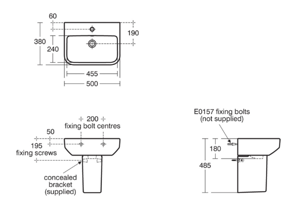 Ideal Standard i.life Compact Basin and Semi-Pedestal 50cm 1 Tap Hole