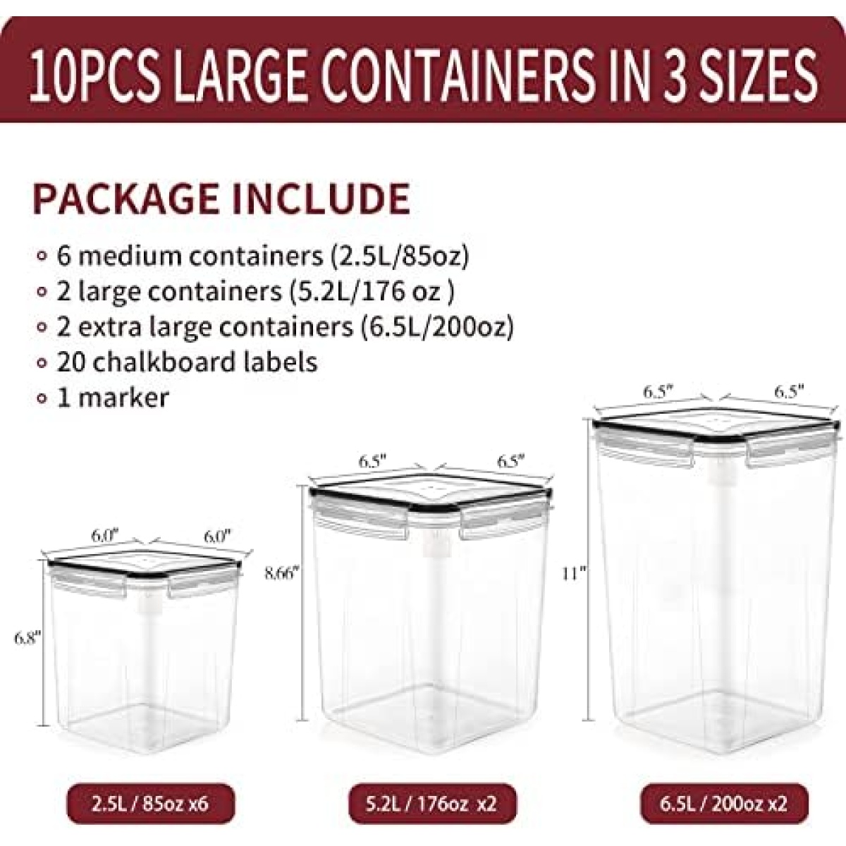 Just the Right Containers— The flour and sugar containers set included 2pcs EXTRA LARGE size 6.5L/220oz, 2pcs LARGE size 5.2L/176oz and 6pcs MEDIUM size. Extra gift( White pen + 20pcs Blackboard labels), which is very suitable for storing daily food.