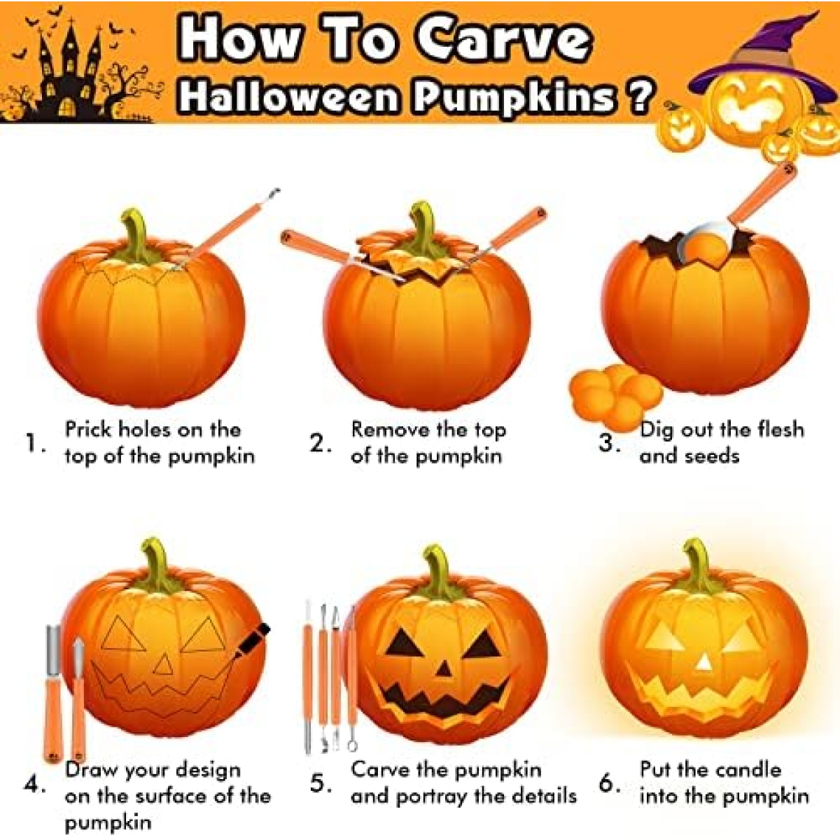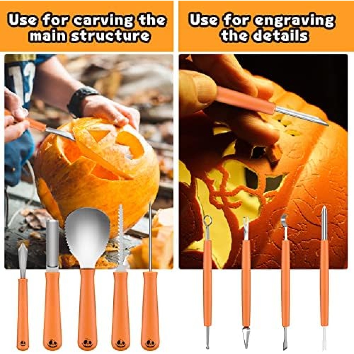 【IDEAL HALLOWEEN GIFT】This jack o lantern carving is a perfect gift for Halloween, adults, and kids (beginners) who are all suitable.Creating a jack-o-lantern is a fun job, can allow you to cooperate with your families and friends at the same time, and enjoy the happy Halloween pumpkin carving time.
